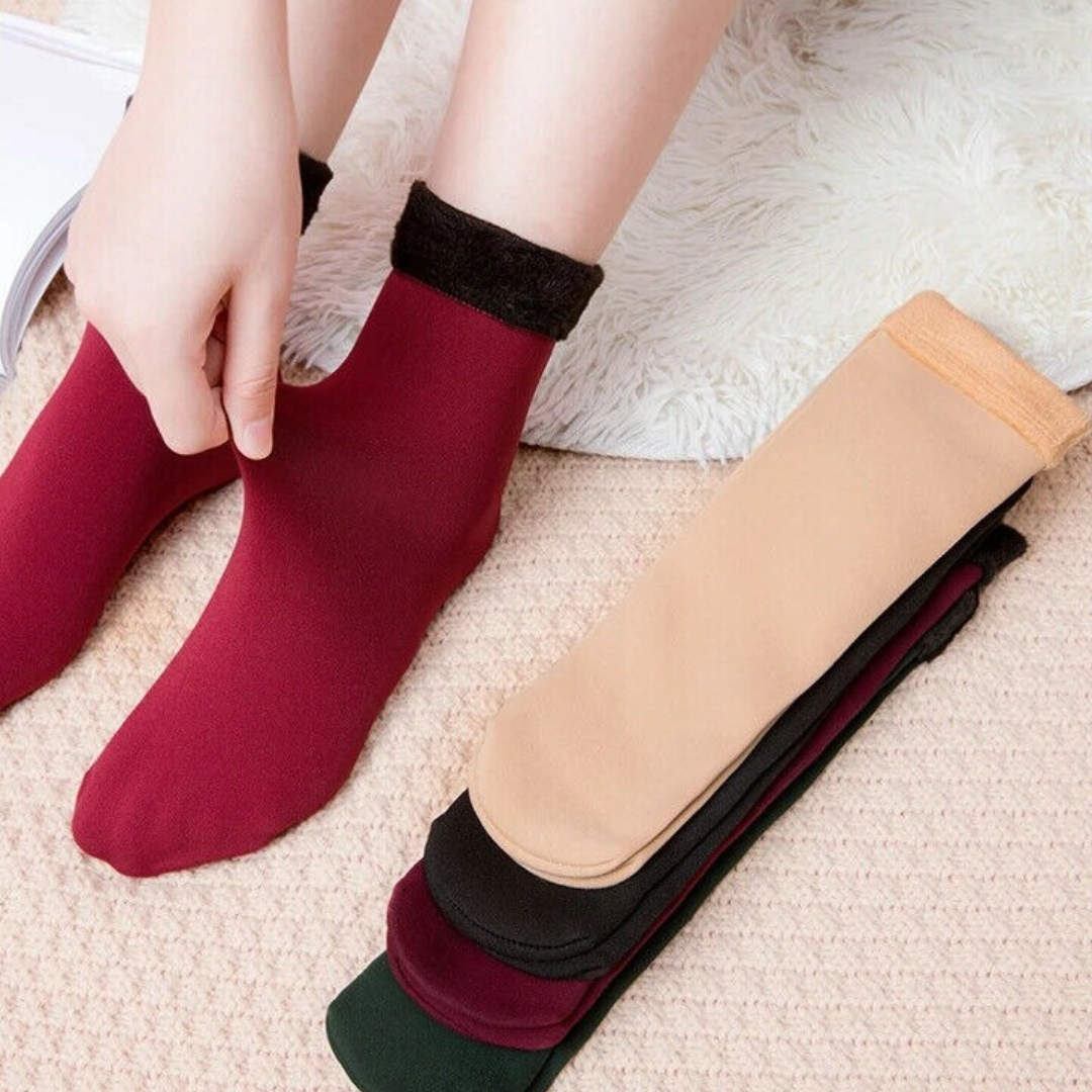 Pack of 12 (6 Pairs) Women Velvet Fur Inside Winter Socks - Multicolor